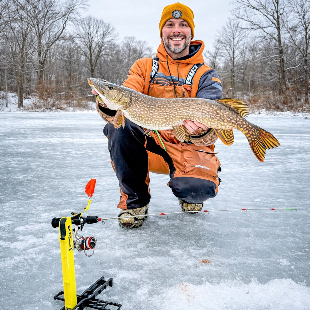 The Dangler Trip-Up allows you to quickly convert your tip-down rod and reel combo to an open spool flag detection system. This works great for summertime boat or bank fishing as well. We use these cat fishing on the shoreline‘s quite often. Made of stainless steel and very durable nylon with a compact design that allows for easy transport. Attaches quickly and easily to your rod handle and adjustable line holder release holds your line in place. Gives you more time to react to the strike because of free spooling open bail design. Allows you to use your own rod and reel combo, with drag system to lay on the fish.